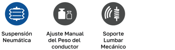 Los modelos Compacto Comfort ofrecen una suspensión neumática para mantener una cómoda jornada de trabajo dentro de un espacio reducido. El asiento dispone de un sencillo ajuste de peso neumático que, combinado con el ajuste de altura, lo convierten en un asiento que se adapta perfectametne a la persona que lo utiliza.