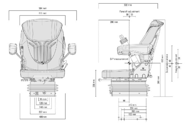 Una pantalla muy simple de visualizar nos indica si queda recorrido de suspensión disponible, independientemente del peso del conductor. Todos los asientos Compacto Comfort disponen de diferentes anchos de acolchado para poderlos ajustar a cada tractor, sea cual sea el espacio de que dispongan.